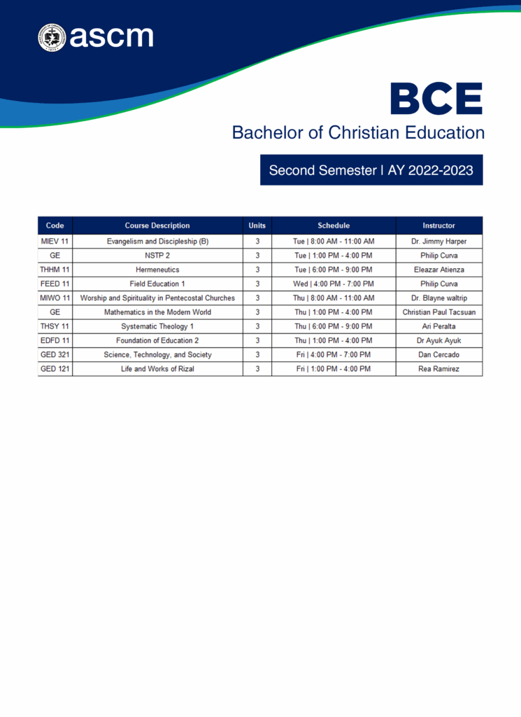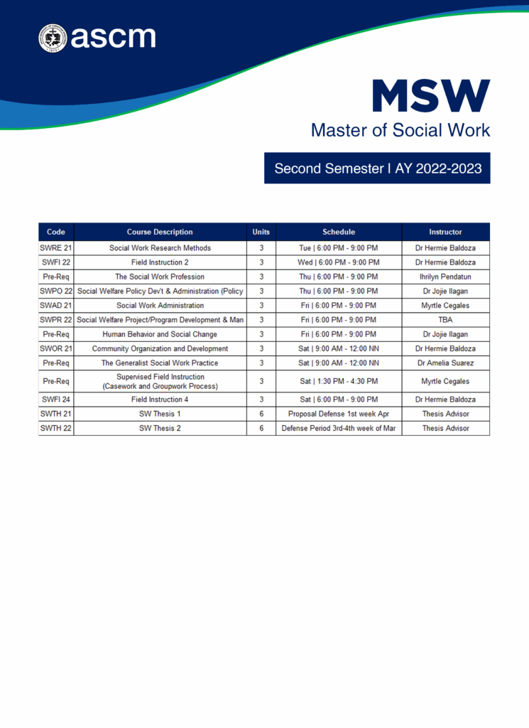 Check out the course schedules for the 2nd semester of Academic Year 2022-2023.