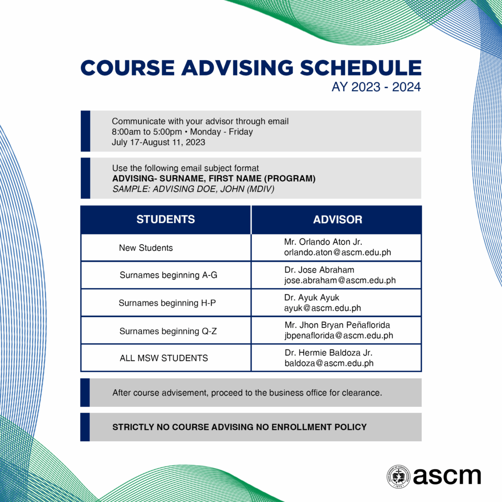 Course Advising Schedule (1st Semester) AY 2023-2024