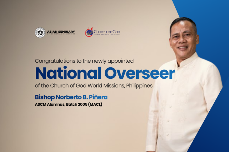 Congratulations, Bishop Norberto B. Piñera!ASCM celebrates your appointment as the new National Overseer of the Church of God World Missions, Philippines. An honored ASCM alumnus, Class of 2005 (MA in Christian Leadership) — your life inspires future Christian servant-leaders and…